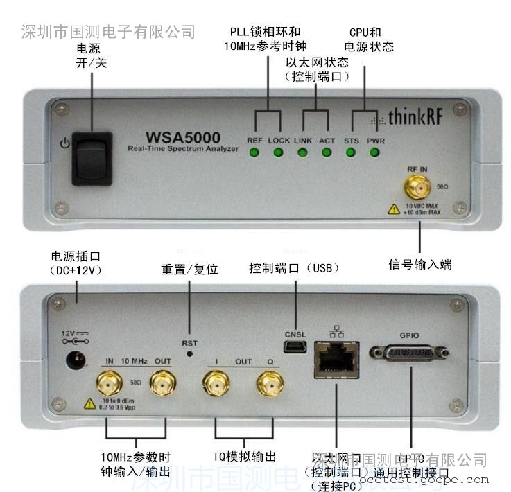 | 连接器 RF输入 10MHz参考输入/输出 模拟I/Q输出 10/100/1000以太网 USB Console GPIO Coaxial Power |