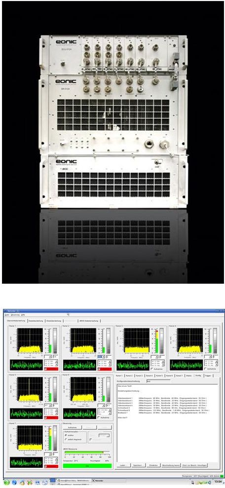 Snapshots of all input signals in frequency and time domain, temperature and humidity info, available disk capacity, user setting of recording parameters like IF, Bandwidth, Trigger and user editable logbook.