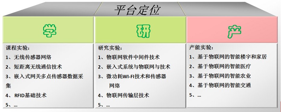 1、传统的以实验箱为中心的教学方式,各实验箱相互独立,只能完成课程的验证性实验和基础性实验,无法让学生直观感知物联网的整体场景和综合应用。