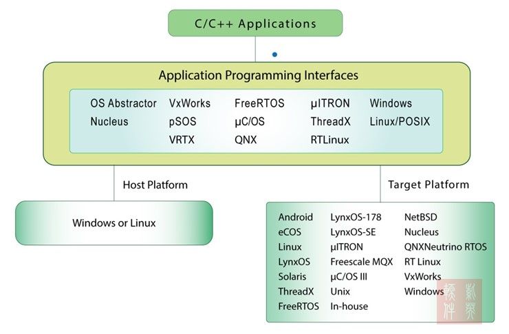 Cross-OS Development Platform is used for new C/C++ application development which is not locked to any particular OS-Hardware platform and can be deployed to multiple platforms. This capability significantly reduces future software porting issues and greatly increases its lifespan and value. It also eliminates the risk associated with the OS selection process since the same application code can be tested on multiple platforms for performance comparison.