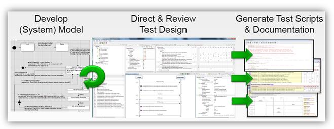 工作流程分为三步骤:1、建立模型;2、自动测试设计;3、执行测试,并比较预期结果。