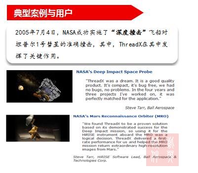 ThreadX硬实时嵌入式操作系统是业内唯一同时达到IEC 61508 安全完善性三级认证(SIL 3)和共通准则第六级(EAL 4+)认证的实时操作系统,推出将两个安全认证结合在一起的产品为用户产品通过认证节省了时间,并降低了所需的开销,可改变产品上市的方式。